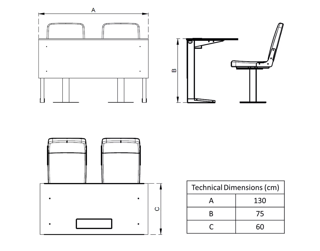 This functional media desk is designed for journalists, commentators, and technical staff, offering a spacious, durable, and ergonomic workspace. Featuring a scratch-resistant surface, integrated cable management, and sturdy metal legs, it provides a professional setup for sports reporting and event coverage.
